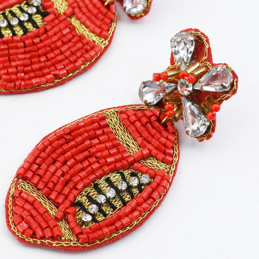 Red Football Beaded Earring S29