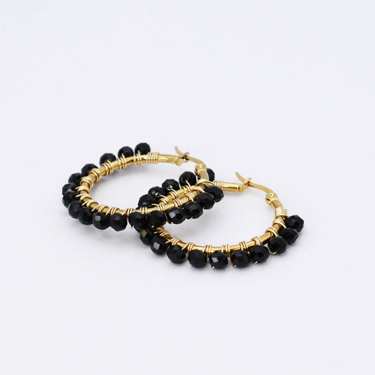 Small Black Beaded Hoop D52