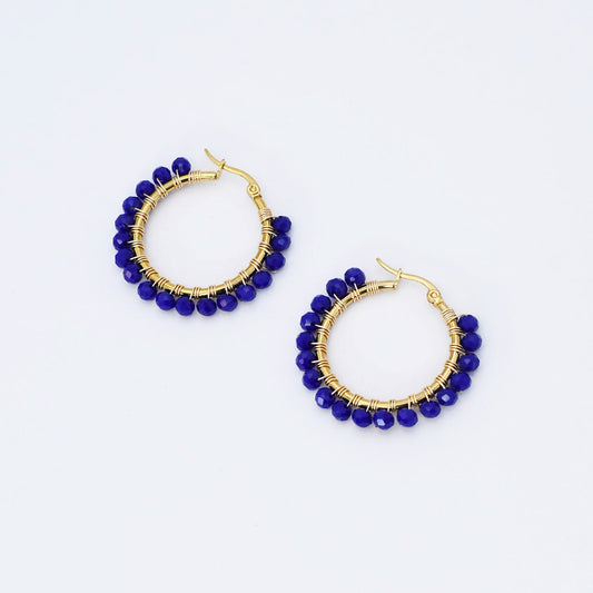 Small Blue Beaded Hoop D52