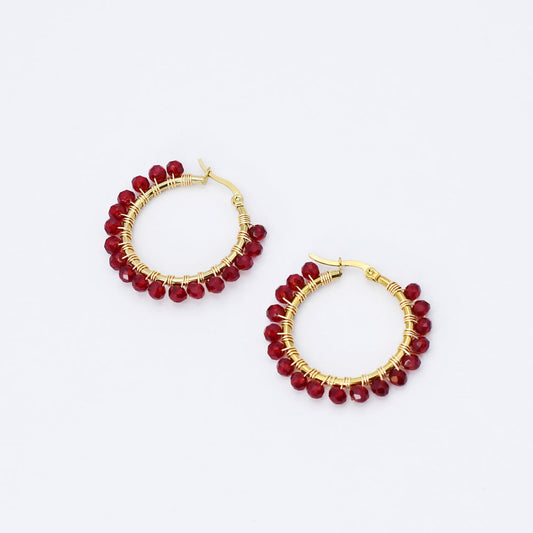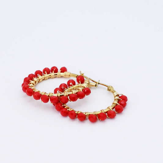 Small Red Beaded Hoop D52