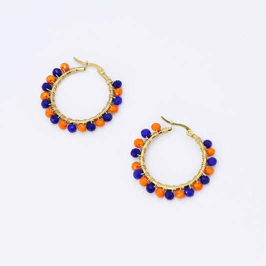 Small Orange/Blue Beaded Hoop D52
