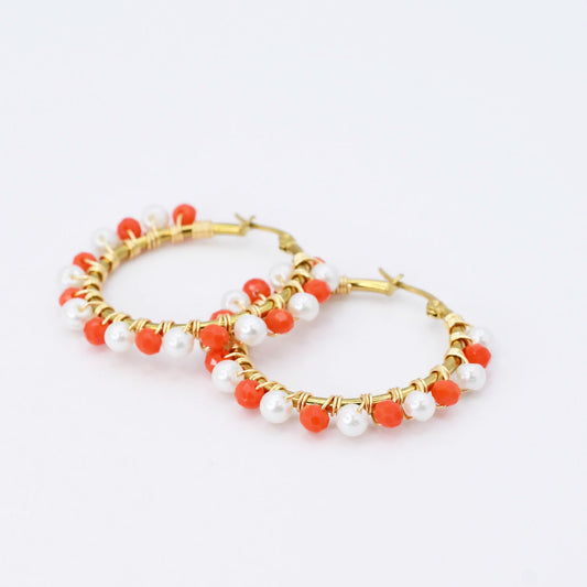 Small Orange/White Beaded Hoop D52
