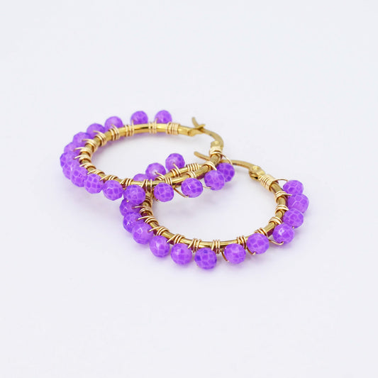 Small Purple Beaded Hoop D52