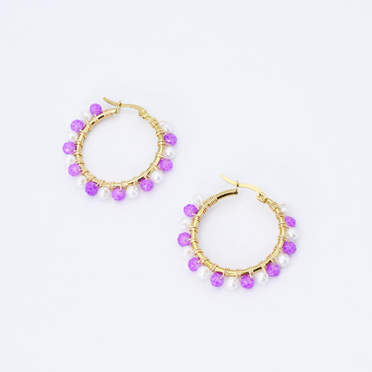 Small Purple/White Beaded Hoop D52