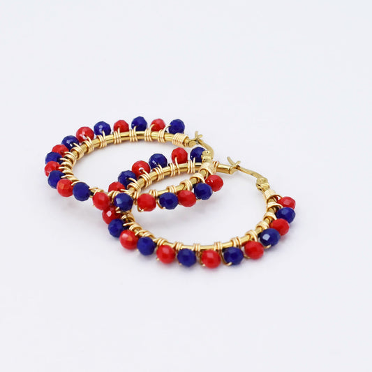 Small Red/Blue Beaded Hoop D52
