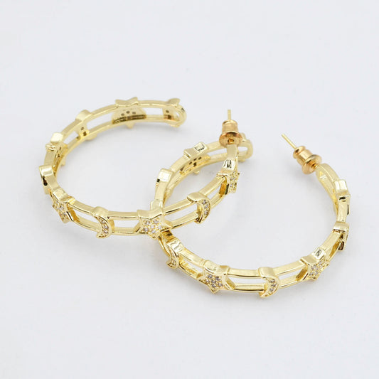 Star Moon Gold Hoop E21