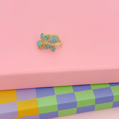 - Features an elegant swirl of turquoise stones accented with dainty crystals for that perfect mix of fun and glam. With its floral inspired design and eye catching shape, this beauty turns every hand gesture into a statement.