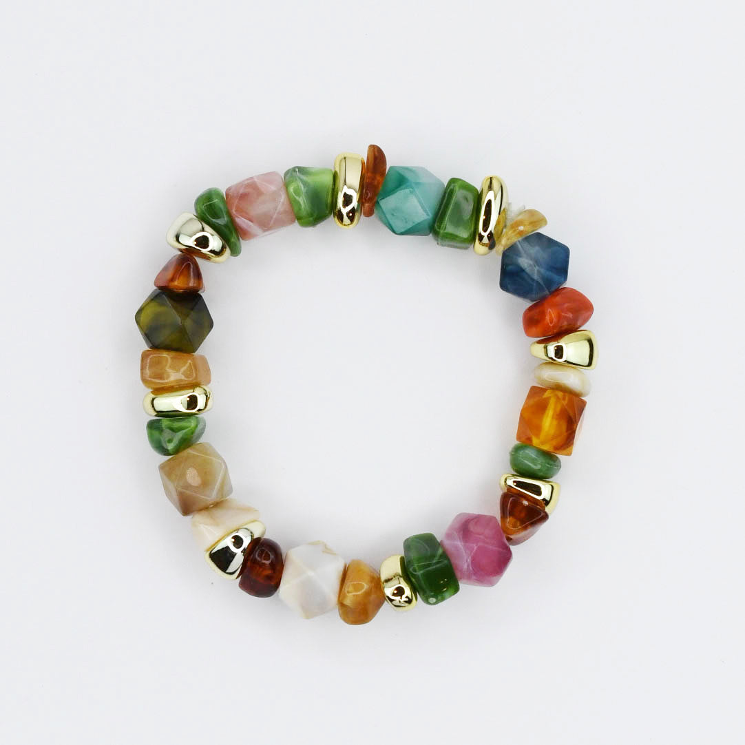 - Bursting with colorful, candy like beads and playful gold accents. This scratchy bracelet is made for stacking, mixing, and bringing good vibes wherever you go.