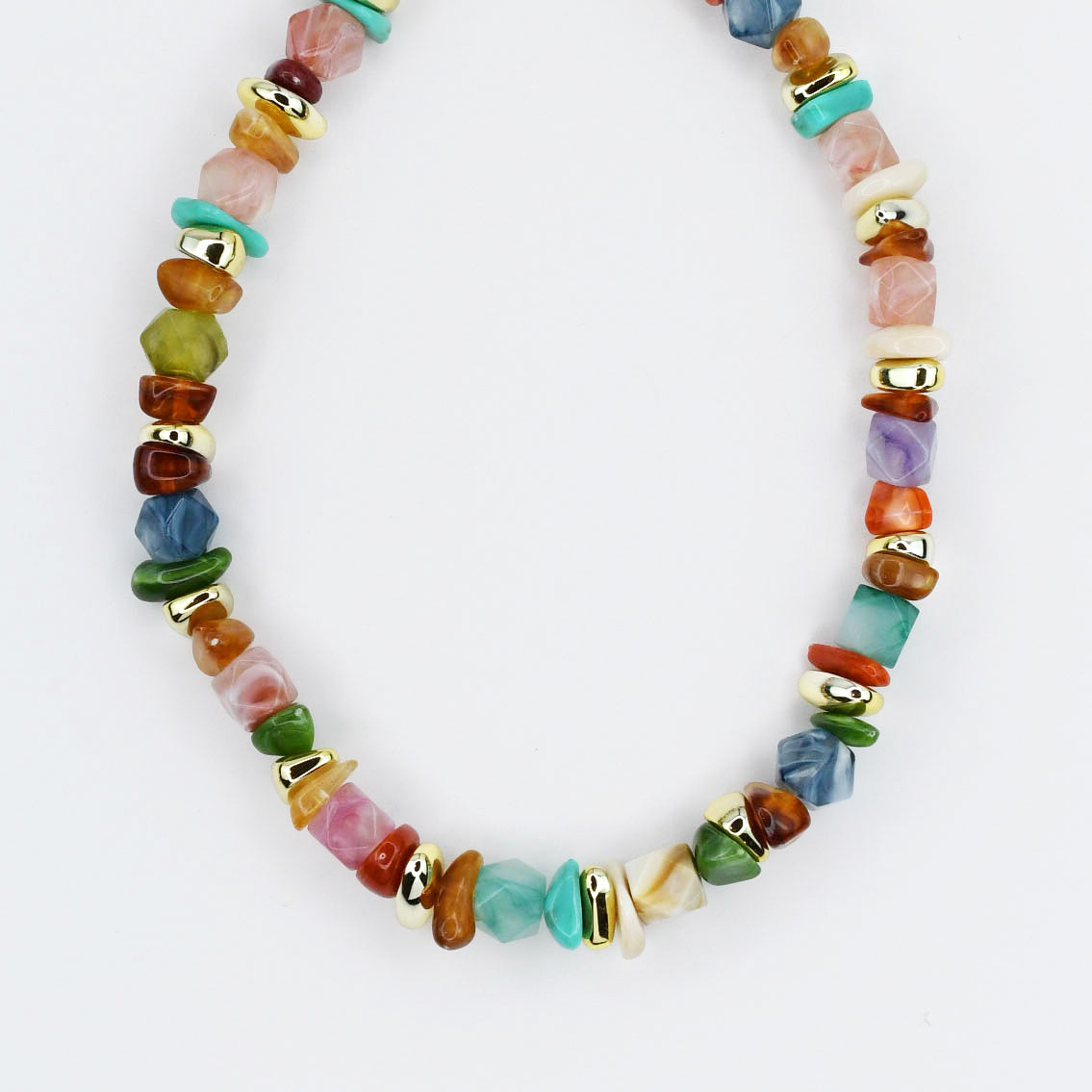 - Bright, bold, and deliciously fun! A colorful swirl of irregular candy like beads and glossy gold accents.