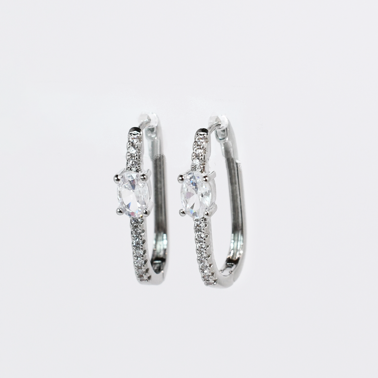 • These elegant silver huge earrings feature a stunning oval cut crystal centerpiece framed by delicate pavé style crystals for extra sparkle.