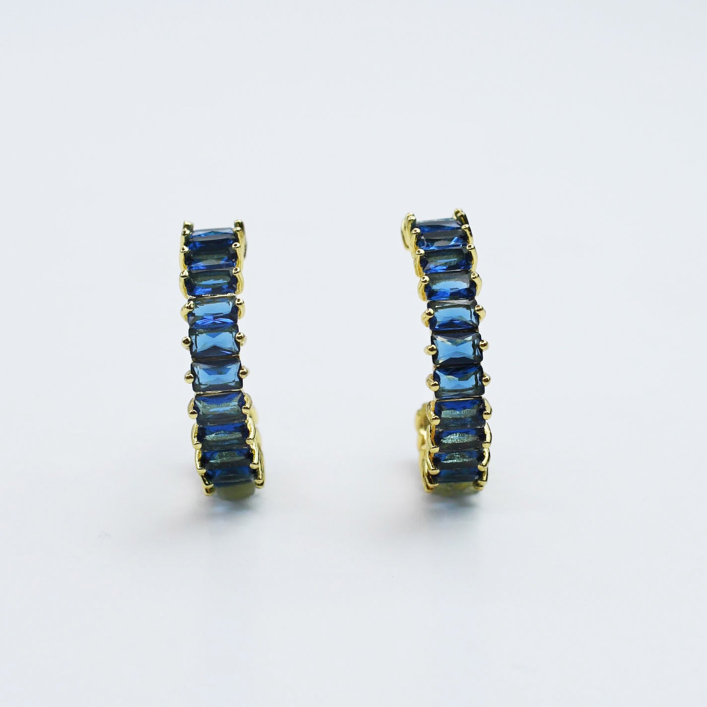 - Designed with sapphire blue stones set in luminous gold plating, these hoops capture the elegance of twilight skies.
