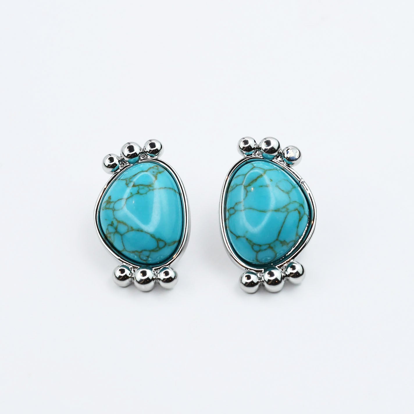 - Featuring teardrop shaped turquoise stones framed in sleek silver with playful bead accents, these earrings embody both elegance and earthy charm.