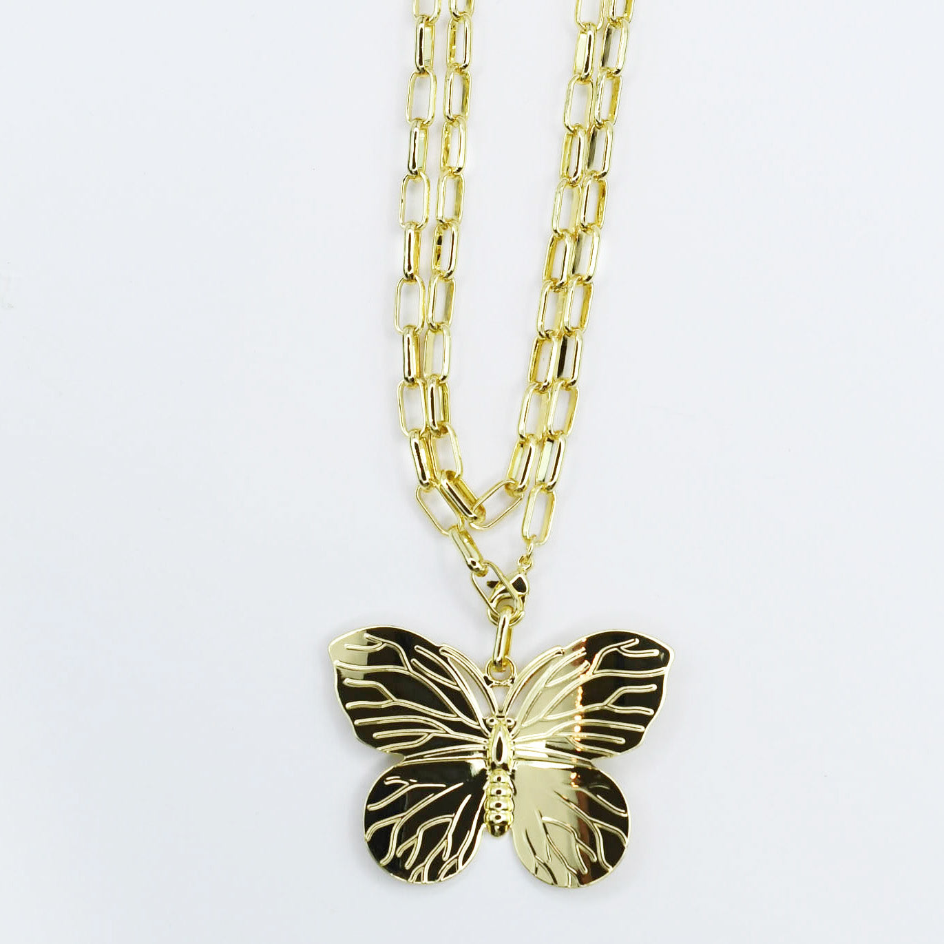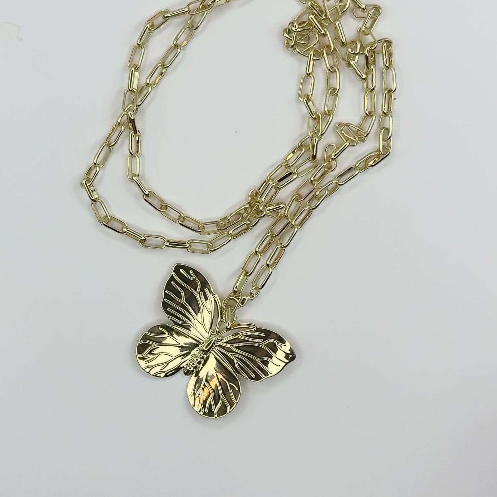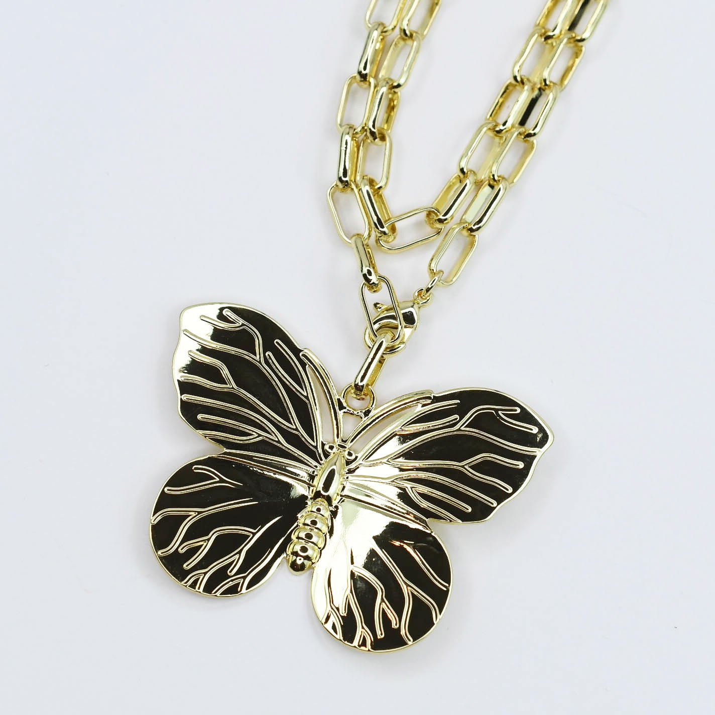 - Featuring a stunning oversized butterfly pendant on a double layer gold chain.